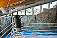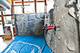 Réalisation d'un mur en béton sculpté, très découpé, le client souhaitait en priorité un élément décoratif qui pourrait également être un mur d'entraînement pour la clientèle privée de la salle. Cette clientèle essentiellement évolue uniquement avec un professeur d'escalade.